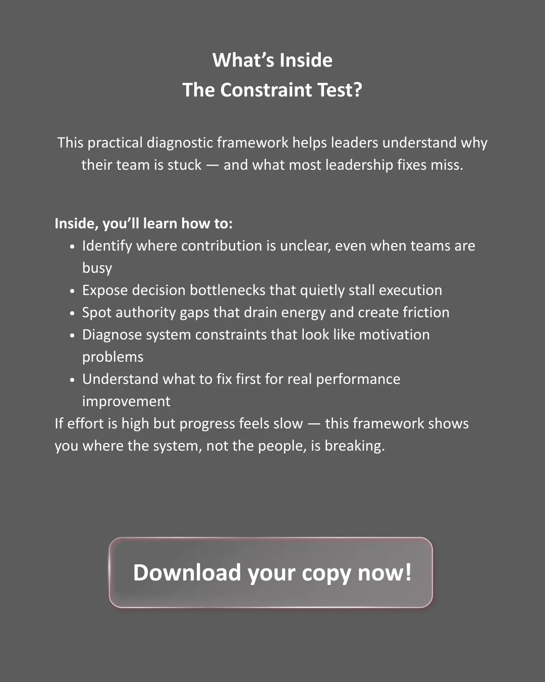 It helps leaders diagnose where performance is breaking down not in people, but in the system they’re operating inside — and shows what to fix first to unlock real momentum.